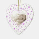 Photo baby's 1st valentine's day ornament keepsake with elegant light purple and white hearts pattern, customisable with your name and baby photo. The perfect memento of baby's first Valentine's day.