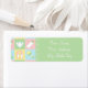Four squares in soft pastels of pink, green, blue, and yellow are framed by a white design like stitch marks and decorated with cute, baby-themed icons of a bottle, diaper, rattle, and bib. Customize the overlay panel on the right with your address to make a cute label to attach to your baby shower invitations. These also make great gift labels! Just replace the address details with "To:" and "From:" to make a perfect way to mark any present for a new baby. Be sure to check out the full Baby's Quilt collection for more great gifts and products for a baby shower or the little one in your life.
