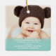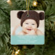 Baby's Stats Blue Green 1st Christmas Photo Ceramic Ornament