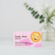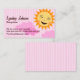 Cute babysitter business or calling cards featuring a happy little cartoon sun with clouds on a pink background. Cute and fun design that can also be used as a mummy calling card.
