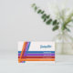 Design features an array of four colourful strips crisscrossing each other ; ultimately forming little signboards to list your details. On the top right of the card sits your position. Below this you can find your name, contact, email and address. Behind the card you have your business URL (which is optional). I have kept the letterings small to create white space at the back. "FOR NOTE TAKING" is at the top left corner, so the page is purposely left blank for your client to take down important notes. All these will make the card a good conversation piece or rather an ice-breaker when you meet potential clients. A good card for babysitters and Nannies.