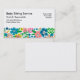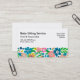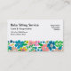 Simple colourful babysitter business card template in a bold and colourful floral design and text templates you can easily personalise online. Designed for a day care professional, babysitting service, or independant sitter.