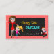 © Sunny Mars Designs. Cartoon Woman with Kids Chalkboard Custom Colour Daycare Business Cards - This fully customisable child care, babysitting or teacher business card features an illustration of a woman taking care of a young girl and a little boy who's reading. It is perfect for day care centres of babysitters. Change the background colour to suit you.