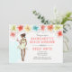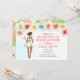 Bachelorette Beach Weekend Getaway Invitation features a tropical theme with hibiscus flowers and African American bride to be enjoying a cocktail. Available with blonde, brown, red hair girl and with dark or light skin.