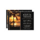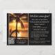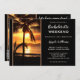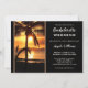 Beach bachelorette weekend itinerary template featuring a sunset at a tropical beach with palm trees. You can choose your own background color to replace the black if you like. On the back is an easy customizable QR code template. You can also just delete it if you do not need it. Beautiful for a tropical weekend getaway.
