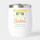 Cute and fun Beaches, Booze & Besties Bachelorette Party gag Thermal Wine Tumbler with modern, minimalist typography in a cool trendy style. The name, occasion, and event can easily be personalised by clicking the "Personalise" button. Matching, and coordinating accessories for team bride available in the store.