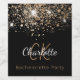 For an elegant Bachelorette Party. A chic black background with faux gold glitter spots. Personalise and add a name and monogram initials. The name is written in a golden colour with a modern hand lettered style script. White and golden letters.