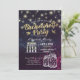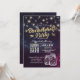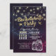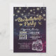 Bridal Shower / Wedding Celebration Invitation Card Templates - Elegant Bachelorette Party Faux Gold Foil Lettering Script and Vintage Mason Jar String Lights on Purple Sparkle Bokeh Lights Background.