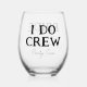 Bachelorette party stemless wine glass for the bride to be and her "I Do Crew". Great for your party celebrations and occasions. To edit the text on both sides click on the personalise button.