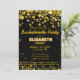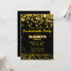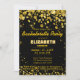 Modern and elegant bachelorette party invitation with rich dark gold glowing confetti glitter on a black background.You can easily customise the text for any occasion if you'd like. You can also change the background colour. Design by Amelia Carrie for zazzle.com/GlitterInvitations