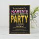 Gold glam bachelorette party invitation. This invitation features gold lettering with a bold "PARTY" in glitter with a glitter border. Note: This is a graphic art print design by Amelia Carrie and contains no messy glitter.