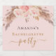 For a bachelorette party. A rose gold, blush background. Decorated with pampas grass and blush pink and rose gold florals. Personalise and add a date, name. The name is written with a modern hand lettered style script.