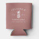Kick off your bachelorette party, girls weekend or trip with these unique custom can coolers. Personalised design in dusty terracotta pink features the bride to be's name, event type, year and destination flanking a white pineapple silhouette illustration.