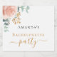 For a bachelorette party with the girls. A chic white background. Decorated with a watercolored rose gold, blush pink floral, flower (rose)and green watercolored eucalyptus leaves, sprigs, greenery and a faux gold sprig. Personalise and add the name of the bride. With the text: Bachelorette party. Black and golden letters.