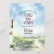 © Socialite Designs Inc. & LICENSORS. The invitation design incorporates a modern watercolor vineyard scene. The invitation back has the same scenic design, but also incorporates a bottle or white wine and a bottle of red wine. The back of the invitation also includes detailed information of the weekend destination bachelorette party. Please contact Socialite Designs if you would like to have other matching products to this design.