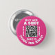 Bachelorette party scannable QR code button in hot pink with the message "buy her a shot, she's tying the knot" and the app name to buy the bride a drink.