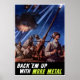 This vintage World War Two poster features American soldiers firing anti-aircraft guns into the night sky. It declares, "Back 'Em Up With More Metal". Celebrate American and WW2 History with this digitally restored vintage war poster product from The War Is Hell Store.