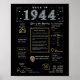 Step back into 1944 with our captivating digital poster, packed with historical titbits, noteworthy events, and intriguing stories from yesteryear. Featuring elegant gold and silver touches set against a bold black background, adorned with unique symbols and stylish text, this poster exudes classic charm. Whether it's sparking conversations at gatherings or simply displayed as a cherished keepsake, it brings a nostalgic vibe to any space.