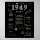 Step into 1949 with our captivating digital poster, brimming with historical nuggets, noteable happenings, and captivating tales from the past. Adorned with elegant gold and silver accents against a striking black backdrop, embellished with distinct symbols and chic text, this poster radiates timeless allure. Whether igniting conversations at gatherings or simply cherished as a memento, it evokes a nostalgic ambiance in any setting.