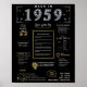 Enter 1959 with our captivating digital birthday poster, brimming with historical facts, noteworthy events, and intriguing stories from the past. Adorned with elegant gold and silver details against a bold black background, featuring unique symbols and stylish text, this birthday poster exudes timeless charm. Whether sparking conversations at birthday gatherings or cherished as a keepsake, it evokes nostalgic memories.