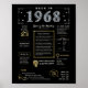 Step back into 1968 with our captivating digital birthday poster, brimming with historical facts, noteworthy events, and intriguing stories from the past. Adorned with elegant gold and silver details against a bold black background, featuring unique symbols and stylish text, this birthday poster exudes timeless charm. Whether sparking conversations at birthday gatherings or cherished as a keepsake, it evokes nostalgic memories.