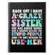 Funny Sisters quote design: Back Off I Have A Crazy Sister She Has Anger Issues And A Serious Dislike For Stupid People And I Am Not Afraid To Use Her. Awesome tee with groovy saying, can make a great present for middle, youngest and oldest sister, best family matching outfit for crazy sisters. Perfect sarcastic apparel for stepsister, sister-in-law, friend, coworker, daughter, niece... in birthday, mother's day, father's day, valentine's day...