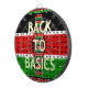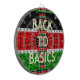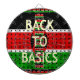 The design features the flag's colours—black, red, and green—in a brick-like, textured pattern, giving the piece a tactile, handmade feel. The iconic Maasai shield and spears are centred over the flag, while the bold, simple yellow text "BACK TO BASICS" emphasises the importance of culture, unity, and national foundation. The entire motif is framed by a decorative border of miniature Kenyan flags, completing this proud, patriotic look.