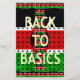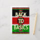 The design features the flag's colours—black, red, and green—in a brick-like, textured pattern, giving the piece a tactile, handmade feel. The iconic Maasai shield and spears are centred over the flag, while the bold, simple yellow text "BACK TO BASICS" emphasises the importance of culture, unity, and national foundation. The entire motif is framed by a decorative border of miniature Kenyan flags, completing this proud, patriotic look.