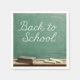 A classic green chalkboard displays 'Back to School' in elegant white cursive with pieces of chalk and eraser