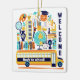 at christmass as a hanging decration for the chritmass tree.. its white porcline or cramic but very well made with added photo on one side.. also has a lovley red bag to keep it in.. execlent printed text in bold and black stands out well aganst the blue background of the photo.