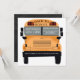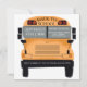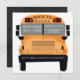 Back to school funny bus end of summer party invitation with a traditional cute hand drawn orange school bus.