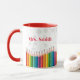 Perfect gift for your favourite teacher or student teacher! Personalised with any name! Cute pencil design; use for any drink or even a pencil holder. Design is printed on both sides. Add a splash of colour to your morning coffee or tea ritual! These ceramic mugs not only have a beautiful design on them, but also a colourful rim, handle, and inside, so the mug is bound to spice up your mug rack.
