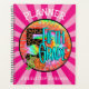 Student notebook for the fifth grade. Choose from ten different page interiors - wide ruled, sketch book, practice handwriting, graph paper, among many. The planner can be personalised with your name and title and features a colourful 5th grade sticker and a pink striped background. Great as a gift for back to school or as an end of year gift.