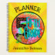 Student notebook for the fifth grade. Choose from ten different page interiors - wide ruled, sketch book, practice handwriting, graph paper, among many. The planner can be personalised with your name and title and features a colourful 5th grade sticker and a yellow striped background. Great as a gift for back to school or as an end of year gift.