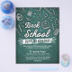 Promote your back to school supplies giveaway with this creative flyer featuring a green chalkboard background, white school supplies and star illustrations, chalk streak & cursive "Back to School" typography. Customise template to your liking.