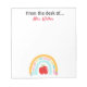 Great for your favourite teacher, principal, secretary, dean, or anyone else at school! This notepad is a great size, and fully customisable! The sturdy paper and simplistic yet cute design with a school supply rainbow and apple accent is just what every teacher needs to keep all her random notes in one place.