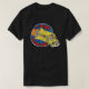 I give wanted to give this a 4 instead of a 5 because these Basic DARK T0shirts run unexpectedly SLIM or Narrow. Which is great if you do not have a potbelly, but I have a paunch. It isn't the shirt's fault that I've got a beer belly. The design and shirt itself is a quality cotton shirt. The color is more of a deep purple, but still a very pretty color. The Basic DARK T-shirts run a bit SLIMMER than the Basic Ts. The neck is a fraction narrower (or seems to be narrower) also. I'm a paunchy middle-aged woman and my neck is 12 inches (31cm) thick and the neckline fell about the same as in the photo of the man, and I had the desire to tug it a bit. So if you're a thick necked man or like loose shirts, be aware these are slimmer shirts. Once I get rid of my lockdown paunch it'll look great. The shirt washed well in cold water with no apparent bleeding. We don't have a dryer, so it hung dry. Did not shrink. Love the colors and the design. The design looks smaller on my shirt than it does on the model on-line. But still, it looks good on the shirt. The printing looks as it does on the model, just the size seems fractionally smaller. Washed garment in cold water, hung dry and design appeared unaffected.