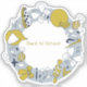 Fun and sweet kid's little things are ready for school year! Colorful stickers for school bag, scrapbooking, letters, home work, as Thank you notes and more. The design features little school things - cap, bag, watch, candy, bow, tie, musical symbol and note, apple and cherry in olive green and white - as border on light blue background, and a white writing area. You can personalize the template text by adding your teacher's or kid's name or note for a special gift or celebration!