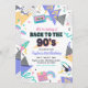 Back to the 90s Birthday Party! Get ready to throw it back with this totally retro invitation, featuring bold Memphis patterns, neon colours, and nostalgic items like a cassette tape. Perfect for a fun-filled Back to the 90s party. Personalise it with your details and get ready to party like it’s the 1990s! Works for all ages!
