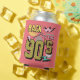 Abstract illustration with colourful "Back to the 90's" text design and colourful Memphis style geometric shapes decoration