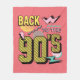 Abstract illustration with colourful "Back to the 90's" text design and colourful Memphis style geometric shapes decoration