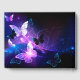 Black background with glowing night butterflies. Night butterflies. Design with butterflies.