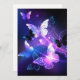 Black background with glowing night butterflies. Night butterflies. Design with butterflies.