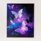 Black background with glowing night butterflies. Night butterflies. Design with butterflies.