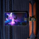 Black background with glowing night butterflies. Night butterflies. Design with butterflies.