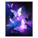 Black background with glowing night butterflies. Night butterflies. Design with butterflies.