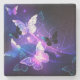 Black background with glowing night butterflies. Night butterflies. Design with butterflies.