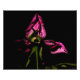 A photograph of a the backside of a pink flower that is partially hidden in the shadows.