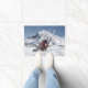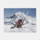 Tourist equipment - backpack, skis and poles lie on snow on background cone of volcano on Kamchatka Peninsula on sunny day. Eurasia, Russian Far East, Kamchatka Region.