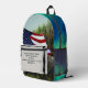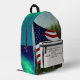 Carry the spirit of lifelong learning and American pride on your back with this vibrant, all-over print backpack. Featuring a stunning gradient teal background blending into lush green grasslands, a waving American flag adds a patriotic touch that evokes freedom and resilience.